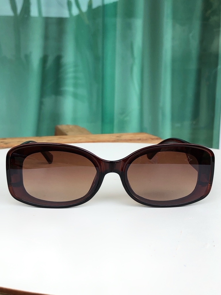 Armação personalizada com nossa logo gravada na lente e nas astes do óculos.